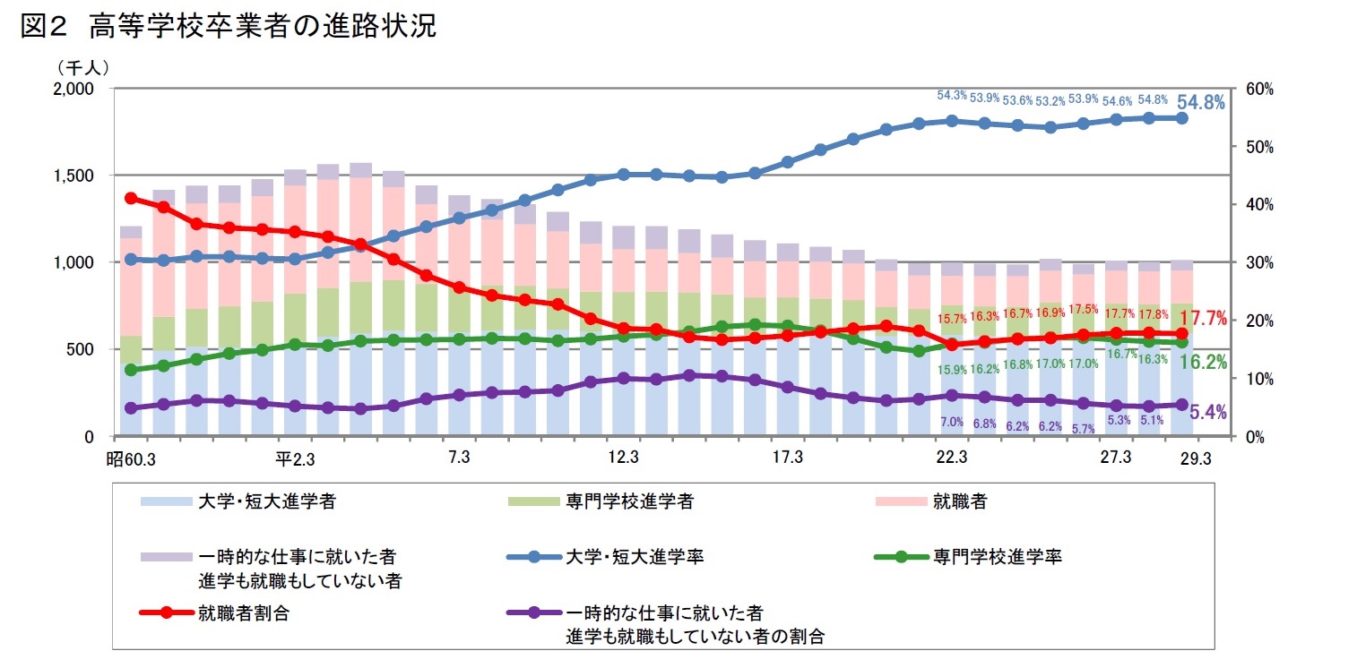 最初に、大学数が多すぎることに触れています。学校調査によれば、当時の大学数と今の数を比較すると、